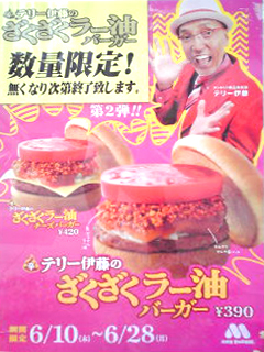 これは今噂の「テリー伊藤のザクザクラー油バーガー」(> <)g
